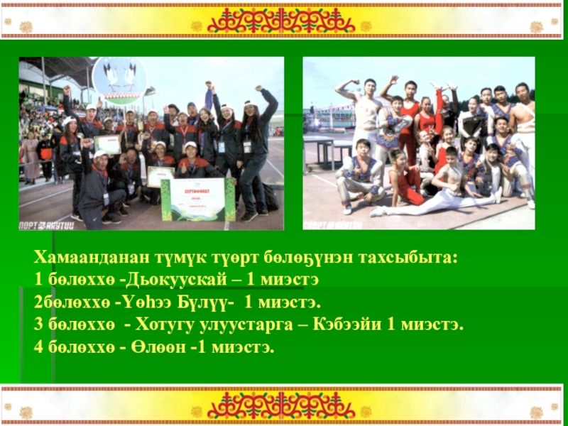 Слайд 33Хамаанданан түмүк түөрт бөлөҕүнэн тахсыбыта: