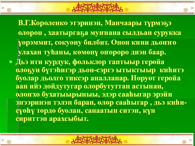 Слайд 35В.Г.Короленко этэринэн, Манчаары түрмэҕэ