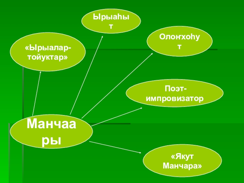 Слайд 15Кэпсээҥҥэ кэпсэнэр, тойукка туойуллар, көстөр дьүһүнэ үчүгэйинэн күөх окко , күөх