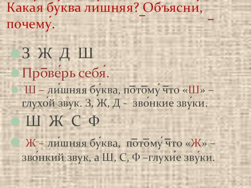 Кака́я бу́ква ли́шняя? Объясни́, почему́.