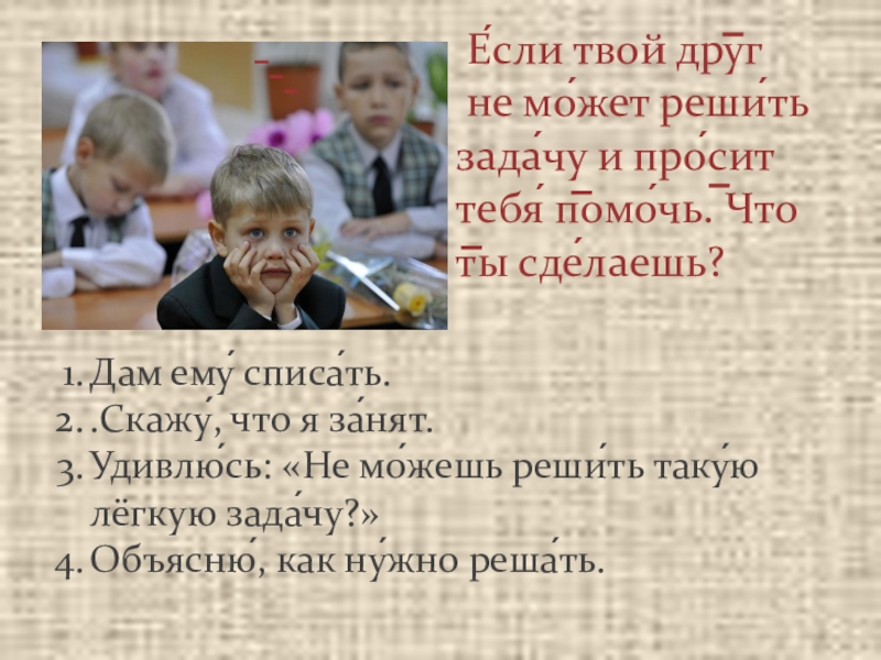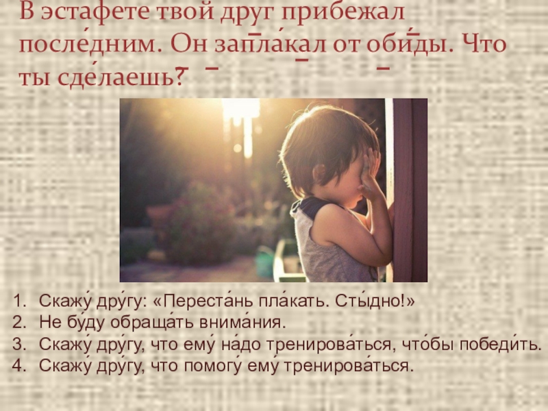 Скажу́ дру́гу: «Переста́нь пла́кать. Сты́дно!»