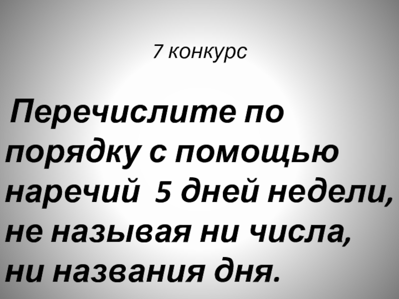 Перечислите по порядку с помощью наречий 5 дней недели, не называя ни числа, ни названия дня.