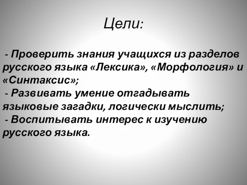 - Развивать умение отгадывать языковые загадки, логически мыслить;