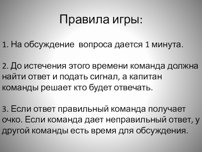 3. Если ответ правильный команда получает очко. Если команда дает неправильный ответ, у другой команды есть время для обсуждения.