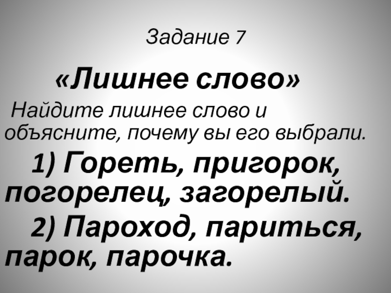 Найдите лишнее слово и объясните, почему вы его выбрали.