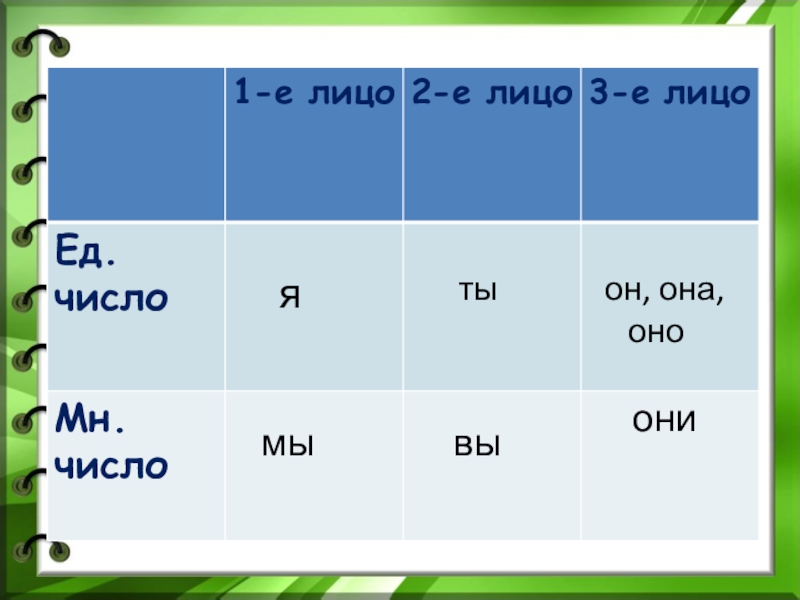 Я ( 1 л., ед.ч.), ты (___________), он (____________).