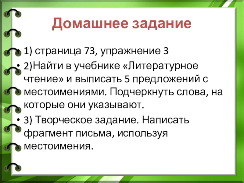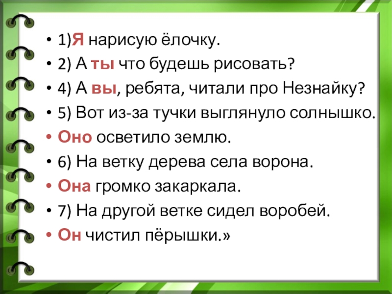 выписать 5 предложений с местоимениями. Подчеркнуть слова, на которые они указывают.