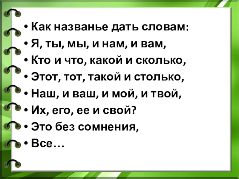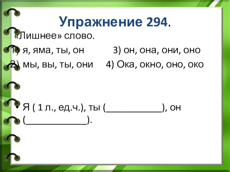 мы, вы, ты, они 4) Ока, окно, оно, око