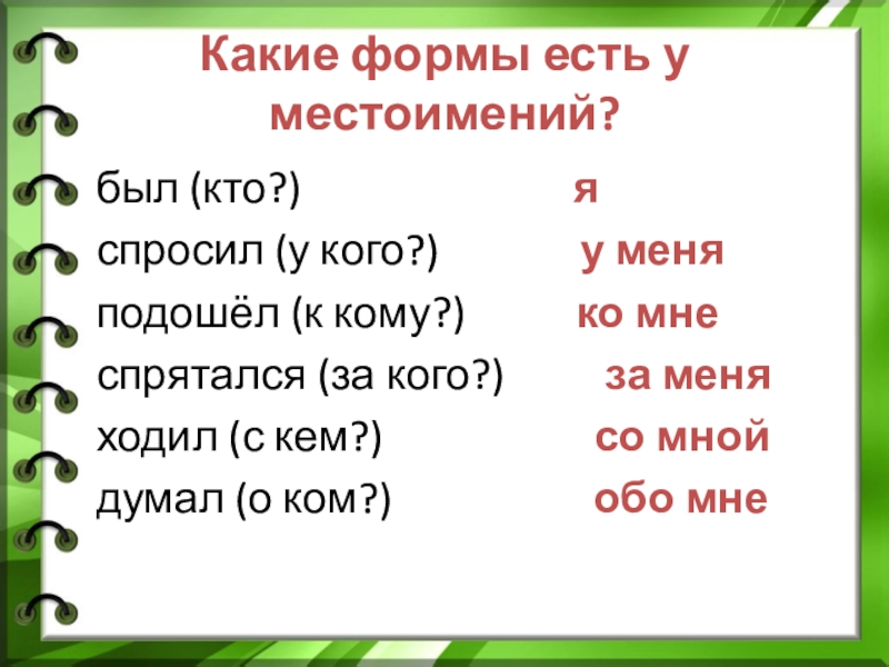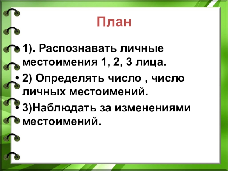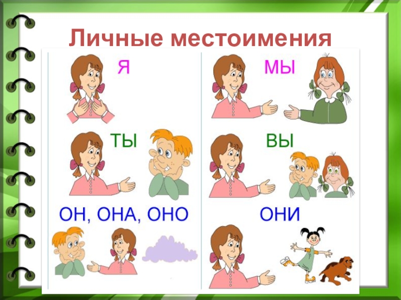 1). Распознавать личные местоимения 1, 2, 3 лица.