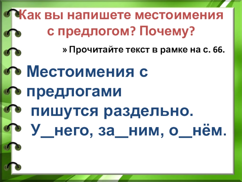 Слайд 17Как вы напишете местоимения с предлогом? Почему?