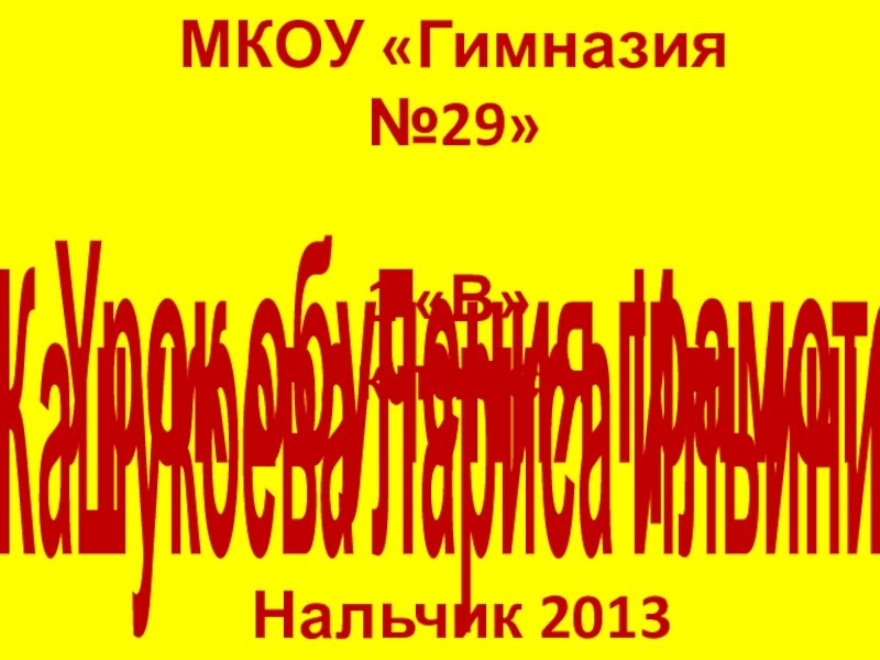 МКОУ «Гимназия №29»Урок обучения грамоте1 «В» классКашукоева Лариса ИльиничнаНальчик 2013 год