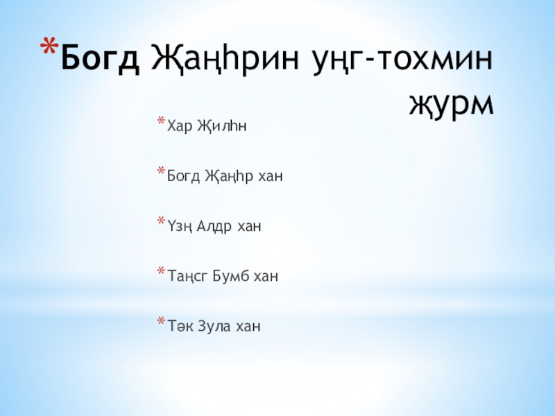 Слайд 3Богд Җаңhрин уңг-тохмин җурм