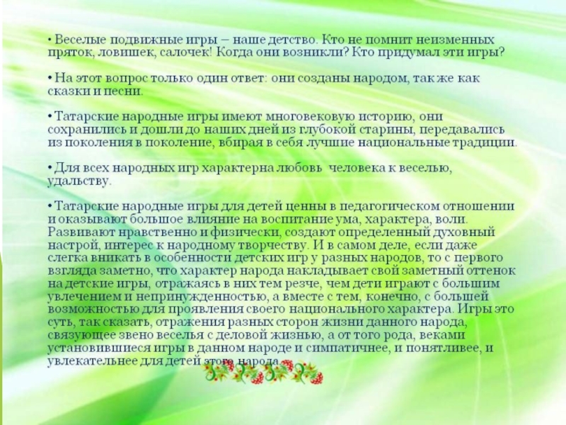 4. Составлять презентации: «Татарские народные игры на празднике сабантуй», «Мое Оренбуржье» и т.д.