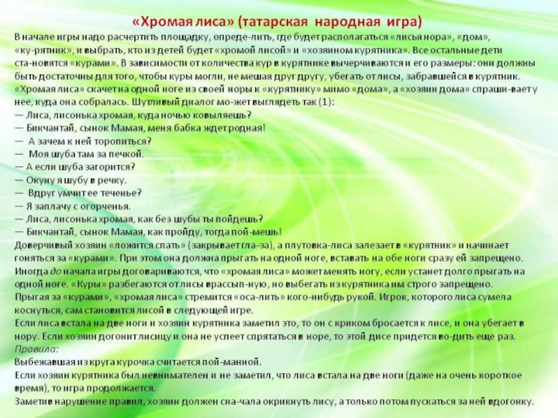 Пополнение картотеки подвижных игр играми народов Оренбуржья (татар, башкир);