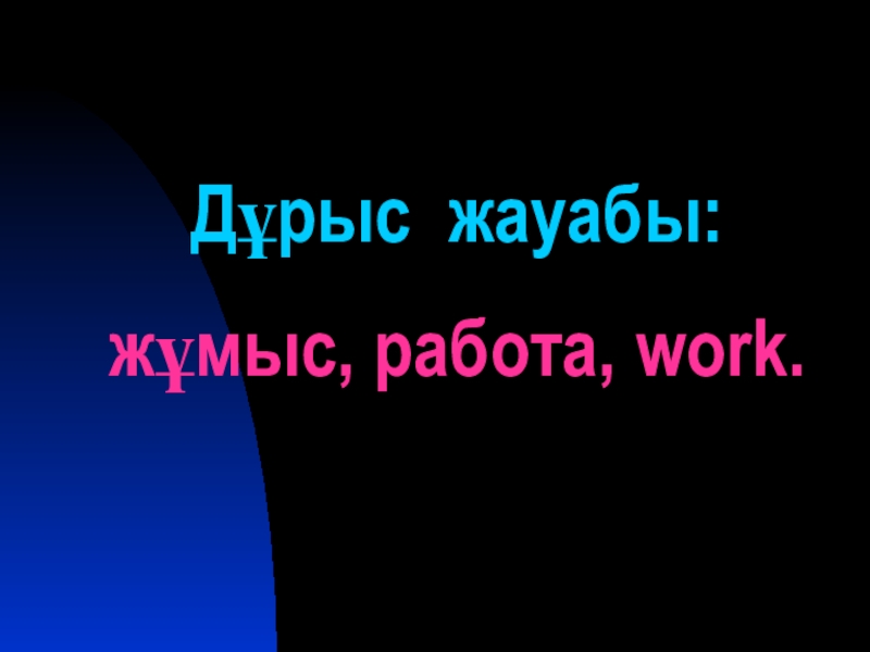 Слайд 24Дұрыс жауабы: жұмыс, работа, work.