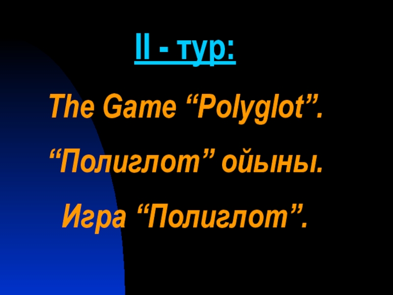 Слайд 16ІІ - тур: The Game “Polyglot”. “Полиглот” ойыны. Игра “Полиглот”.