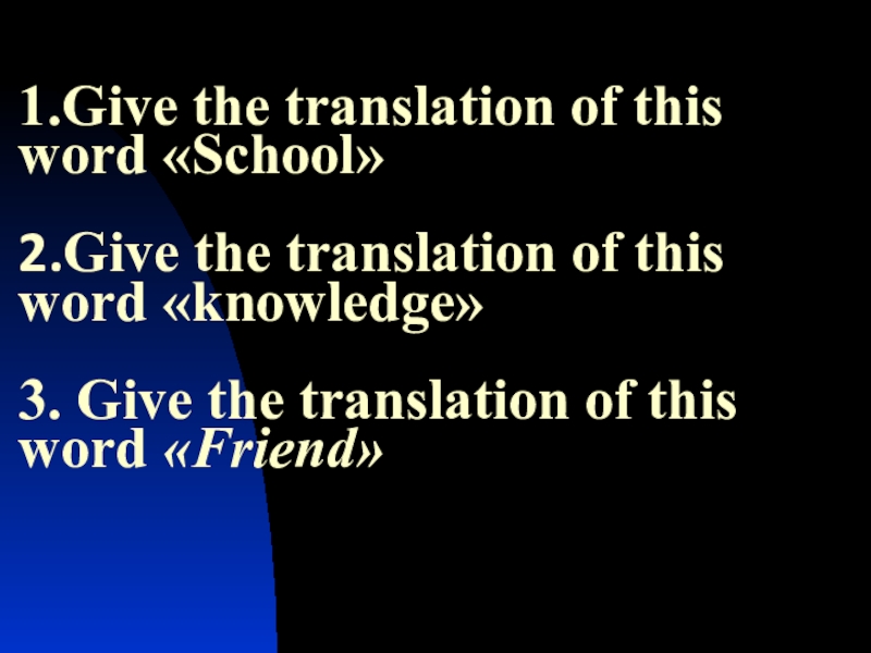 1.Give the translation of this word «School»    2.Give the translation of this word «knowledge»  3.