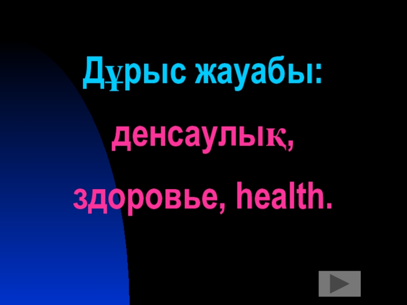 Слайд 30Дұрыс жауабы: денсаулық, здоровье, health.