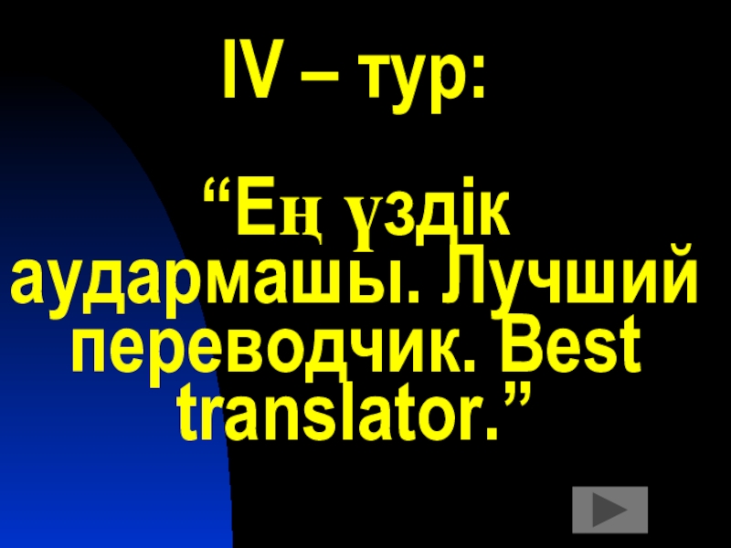 Слайд 41ІV – тур: “Ең үздік аудармашы. Лучший переводчик. Best translator.”