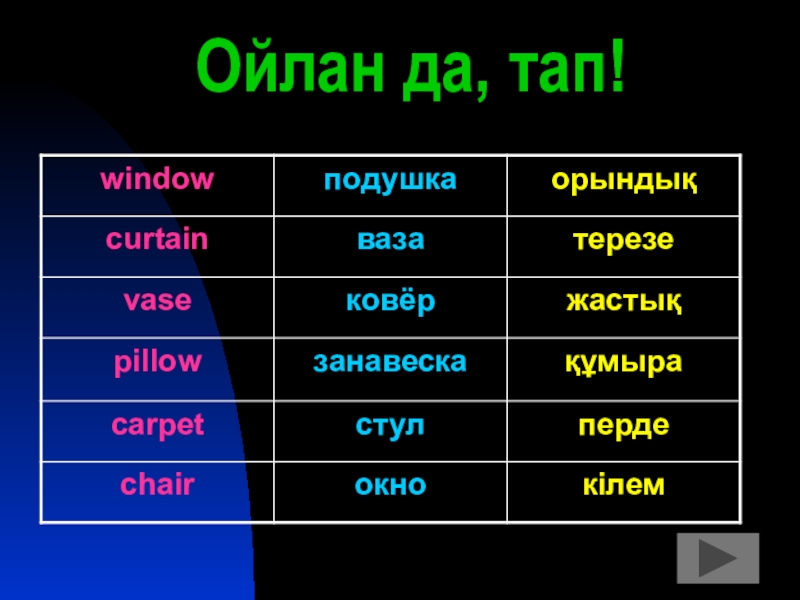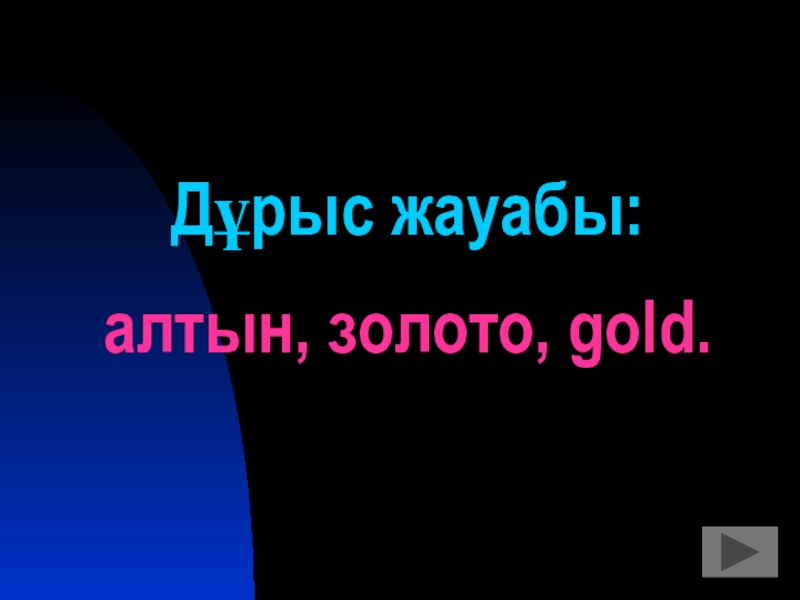 Слайд 26Дұрыс жауабы: алтын, золото, gold.