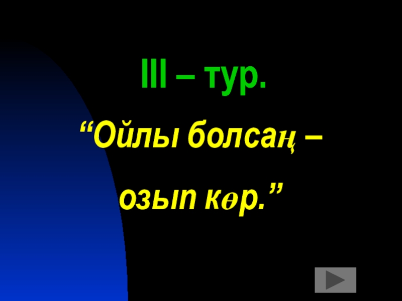 Слайд 38 ІІІ – тур. “Ойлы болсаң – озып көр.”