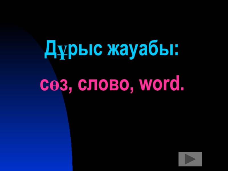 Слайд 34Дұрыс жауабы: сөз, слово, word.