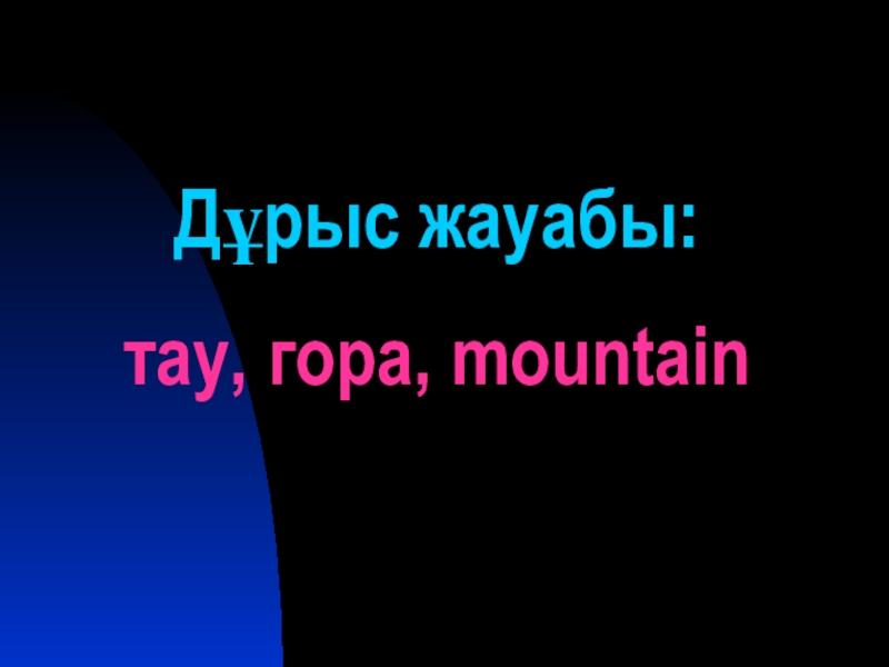Слайд 22Дұрыс жауабы: тау, гора, mountain