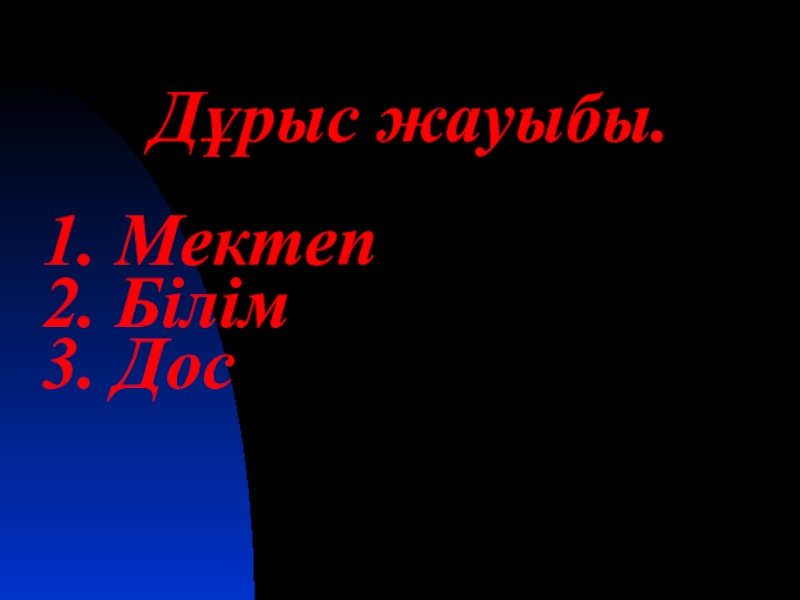 Дұрыс жауыбы.  1. Мектеп  2. Білім 3. Дос