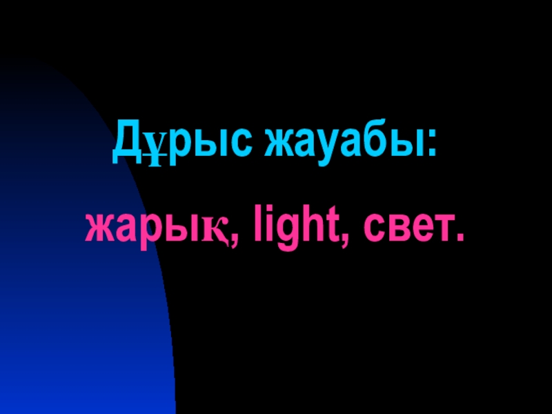 Слайд 20Дұрыс жауабы: жарық, light, свет.