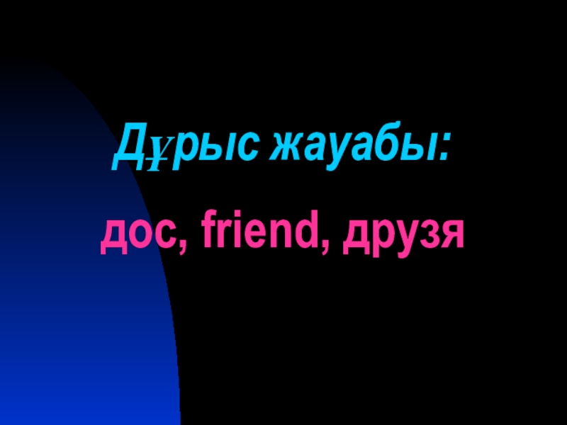 Слайд 18Дұрыс жауабы: дос, friend, друзя