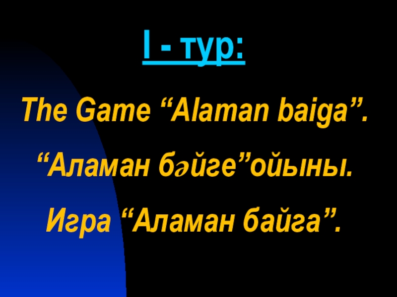 Слайд 2І - тур: The Game “Alaman baiga”. “Аламан бәйге”ойыны. Игра “Аламан байга”.