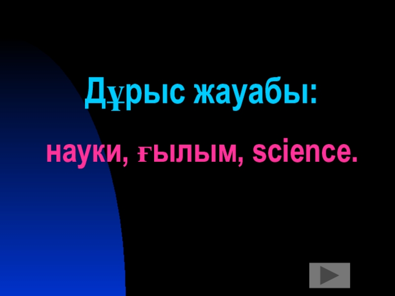 Слайд 28Дұрыс жауабы: науки, ғылым, science.