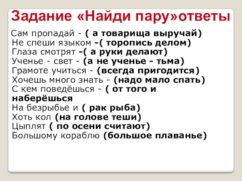 Задание «Найди пару»ответы