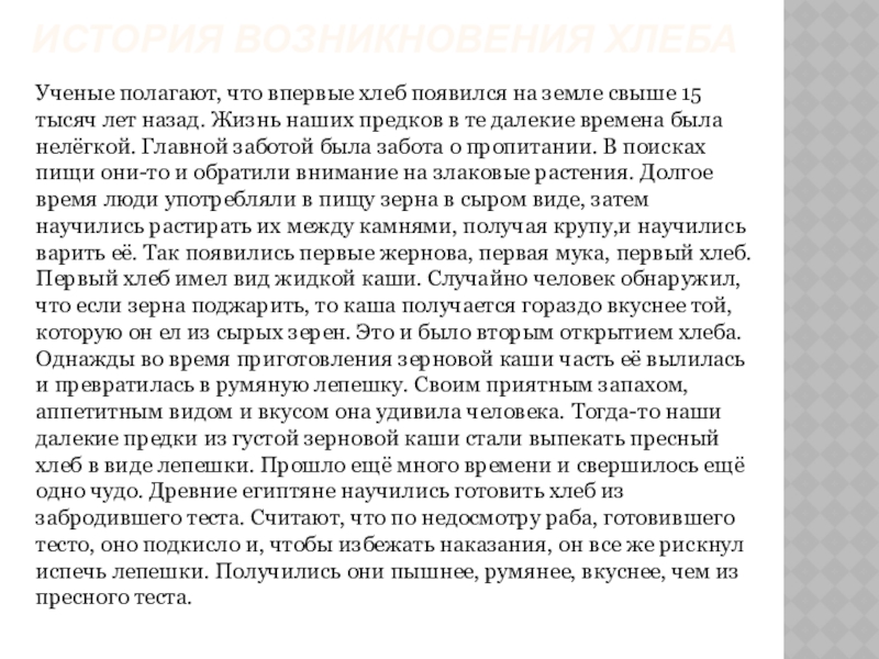 ИсТОРИЯ ВОЗНИКНОВЕНИЯ ХЛЕБА
