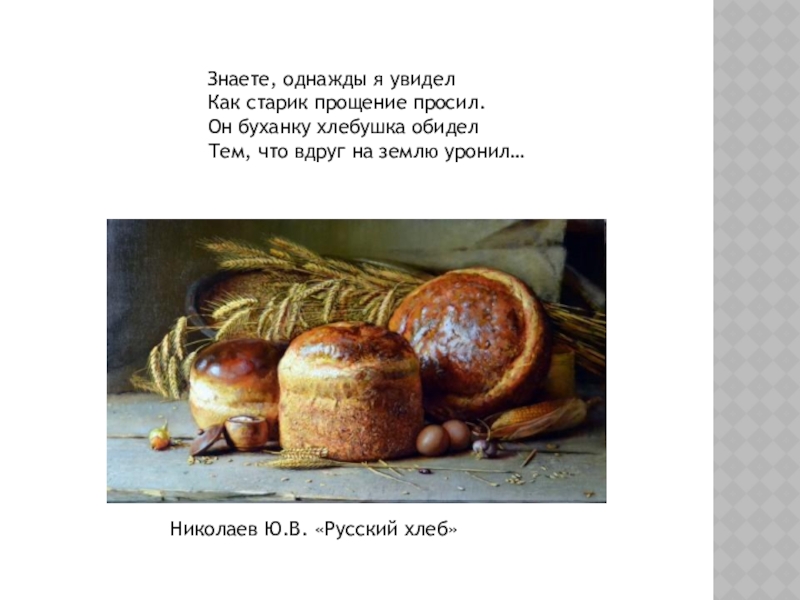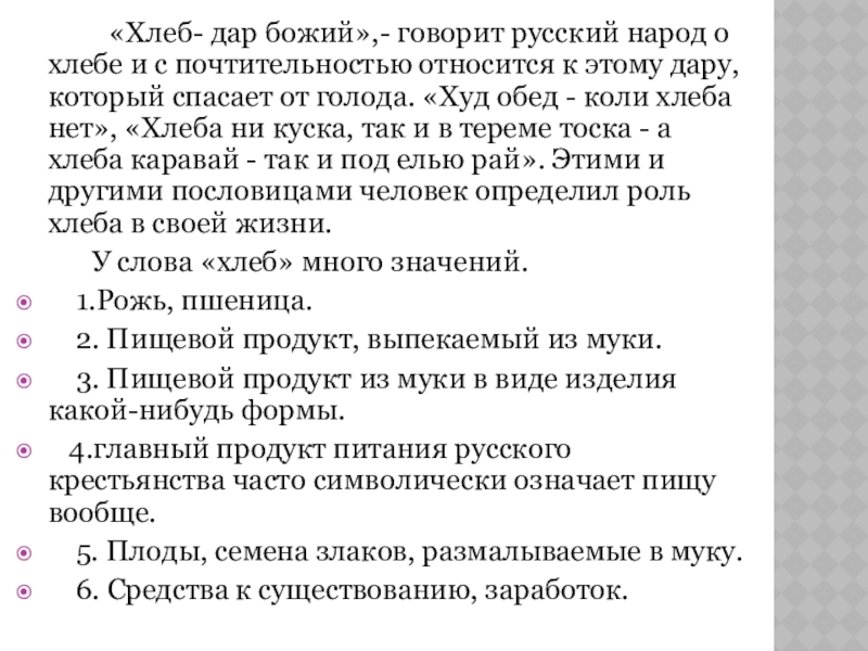 Слайд 10 «Хлеб- дар божий»,- говорит русский народ о хлебе и с почтительностью