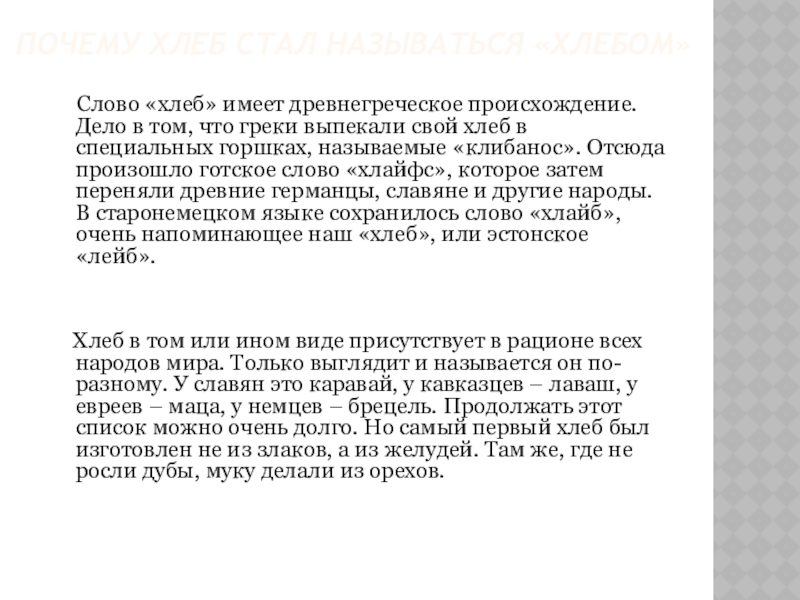 Слайд 14ПОЧЕМУ ХЛЕБ СТАЛ НАЗЫВАТЬСЯ «ХЛЕБОМ»
