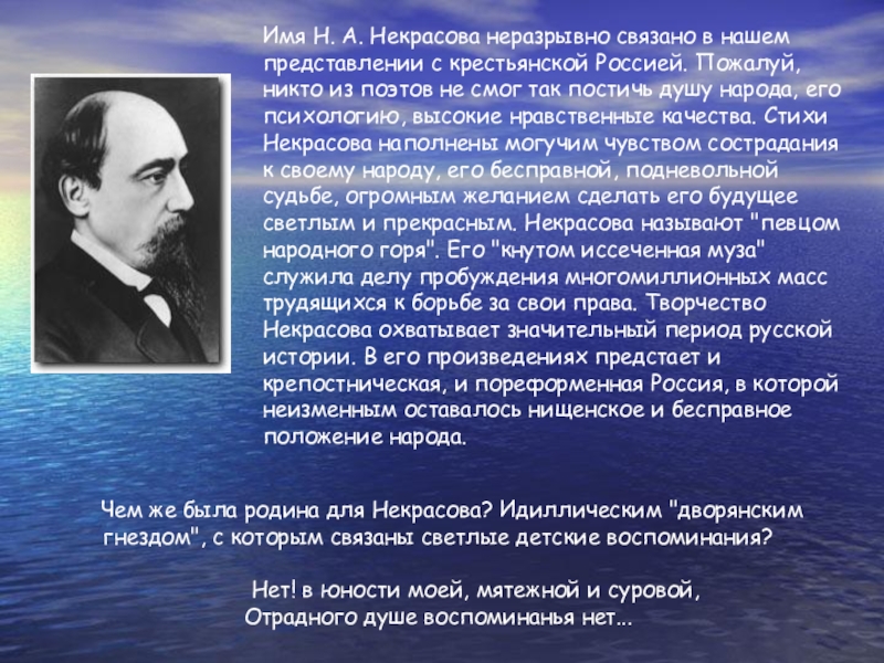 Чем же была родина для Некрасова? Идиллическим "дворянским гнездом", с которым связаны светлые детские воспоминания?