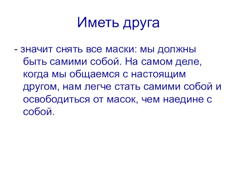 Иметь друга- значит снять все маски: мы должны быть самими собой. На самом деле, когда мы общаемся