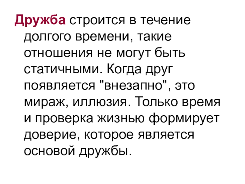 Слайд 4Дружба строится в течение долгого времени, такие отношения не могут быть
