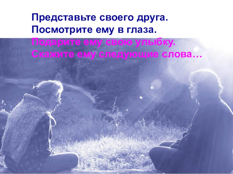 Представьте своего друга. Посмотрите ему в глаза.Подарите ему свою улыбку.Скажите ему следующие слова…