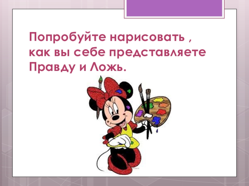 Слайд 6Попробуйте нарисовать , как вы себе представляете Правду и Ложь.