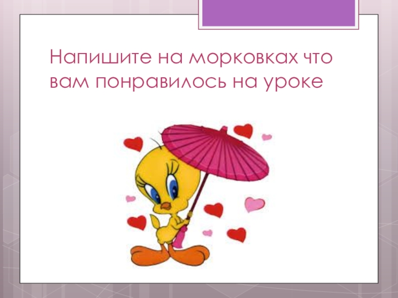 Слайд 11Напишите на морковках что вам понравилось на уроке