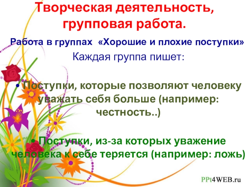 Слайд 6Творческая деятельность, групповая работа.