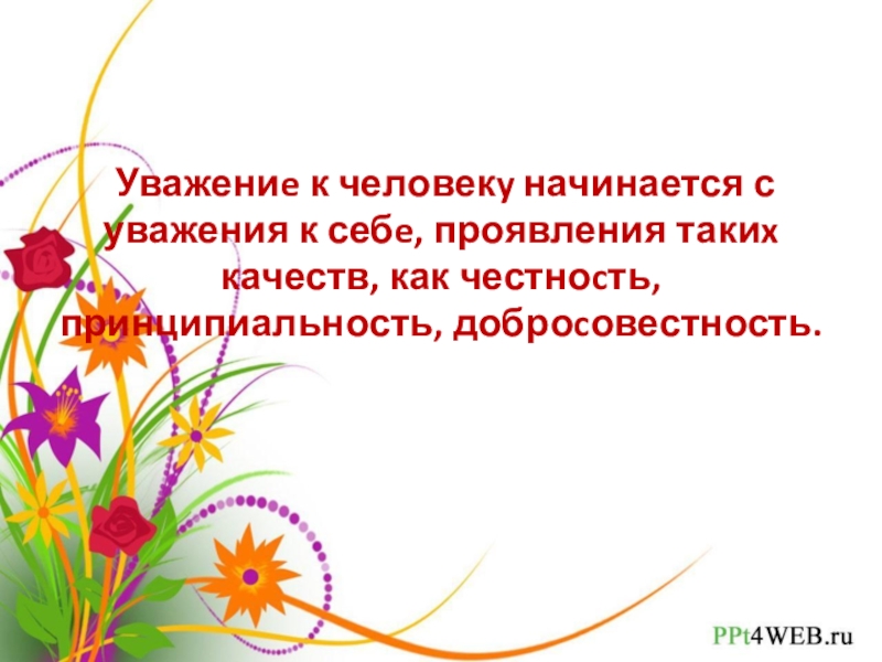 Слайд 9 Уважениe к человекy начинается с уважения к себe, проявления такиx