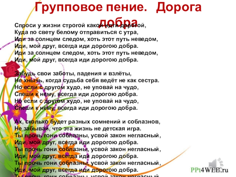Слайд 8Групповое пение. Дорога добра