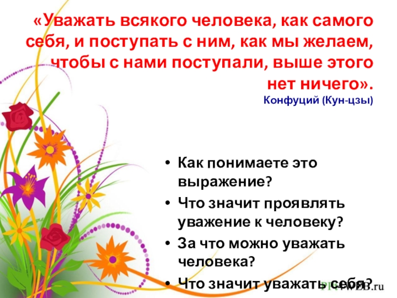 Слайд 3«Уважать всякого человека, как самого себя, и поступать с ним, как