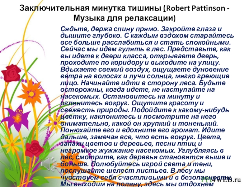 Слайд 11Заключительная минутка тишины (Robert Pattinson - Музыка для релаксации)