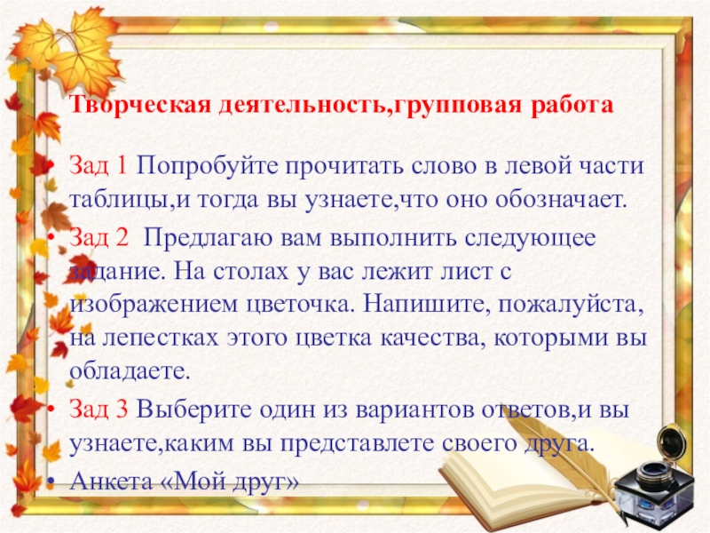 Это сайт презентаций, где можно хранить и обмениваться своими презентациями, докладами, проектами, шаблонами в формате PowerPoint с другими пользователями. Мы помогаем школьникам, студентам, учителям, преподавателям хранить и обмениваться учебными материалами.