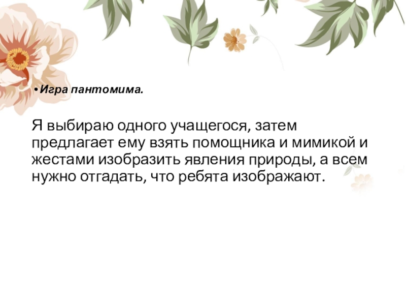 и мимикой и жестами изобразить явления природы, а всем нужно отгадать, что ребята изображают.