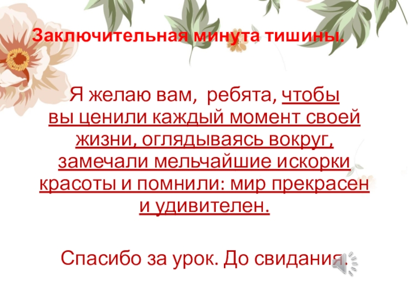 Я желаю вам, ребята, чтобы вы ценили каждый момент своей жизни,